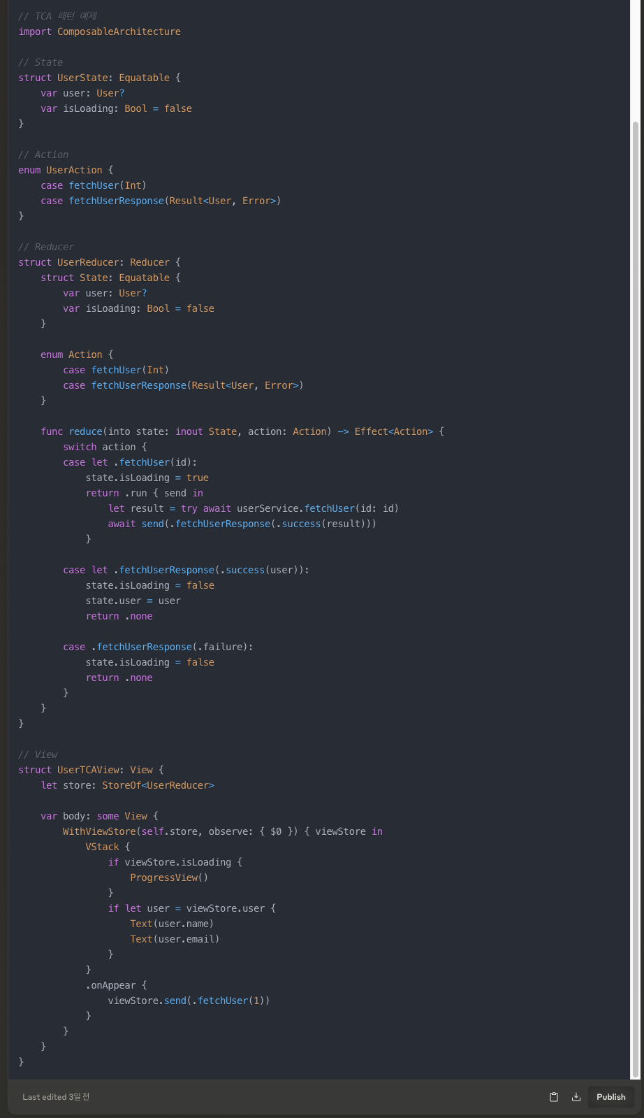 그 이유는 Claude가 설명해 주며 Combine을 활용한 코드를 안내해 주었다.